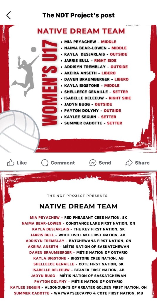 I hope things are well and you had a good holiday season! I just wanted to follow up and give you an update regarding my daughter’s volleyball, seeing as the band sponsored her last summer to attend the North American Indigenous Games (NAIG) in Halifax. This was an amazing experience and opportunity. Thank you again for the sponsorship.